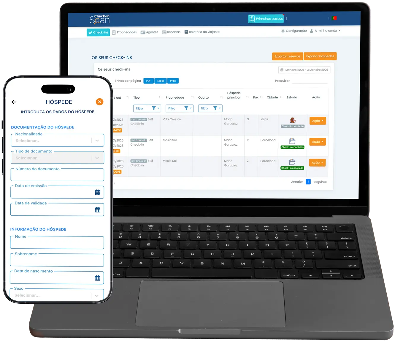 Check-in Scan, software para cumprir o registo legal de hóspedes em alojamentos turísticos. Digitaliza os documentos de identificação e envia o boletim de hóspedes às autoridades, cumpre a lei e poupa tempo nos check-ins manuais.
